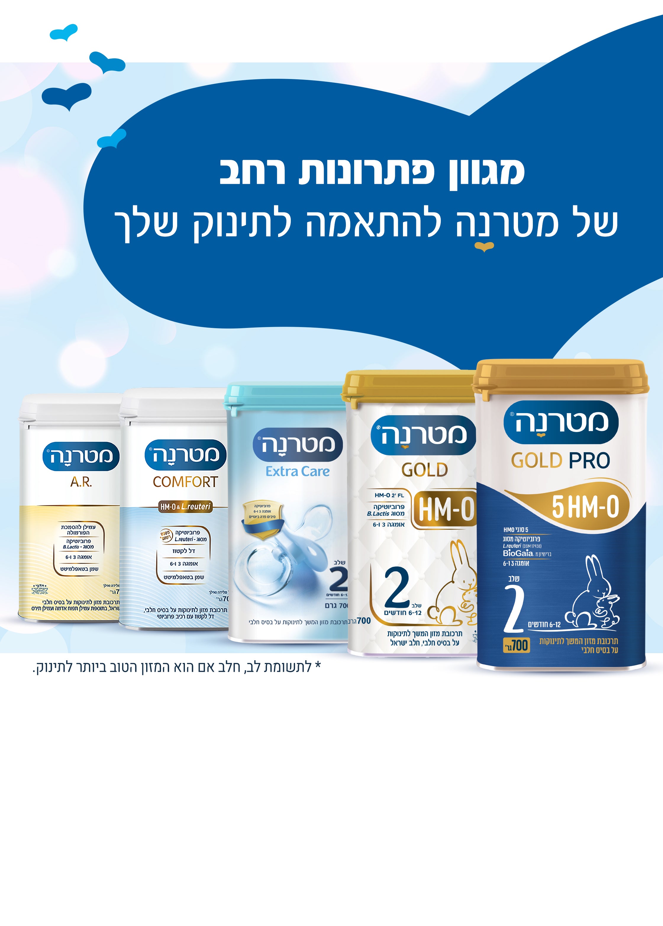 אנחנו מאמינים שהנקה היא ההתחלה התזונתית הטובה ביותר לתינוקות ותומכים באופן מלא בהמלצת ארגון הבריאות העולמי (הWHO) להנקה בלעדית למשך 6 החודשים הראשונים לחיים ולאחר מכן שילוב מזונות משלימים והמשך הנקה עד לגיל שנתיים. אנחנו גם מבינים שהנקה לא תמיד מתאפשרת להורים. מומלץ להתייעץ עם רופא/אה או גורם מומחה אחר בנוגע להזנת התינוק ולגבי העיתוי לשלב מזון משלים. אם בחרתם שלא להניק, זכרו כי החלטה זו יכולה להיות בלתי הפיכה ובעלת השלכות חברתיות וכלכליות. שילוב חלקי של הזנה בבקבוק עלול להפחית את אספקת חלב האם. יש להכין ולאחסן תמ"ל בהתאם להוראות על גבי האריזה על מנת למנוע סיכון לבריאות התינוק.
